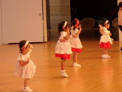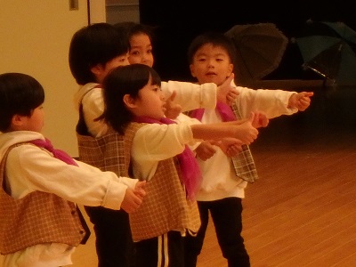 お遊戯会が開かれました。天気も良く、子ども達は上機嫌でホールにやってきました。今年のテーマは忍者!水と空と大地を守る3つの秘宝を探す旅・・なんだか、壮大なストーリーになりました。お話しの冒頭では、p会長が村長(むらおさ)として登場。ちびっこ忍者たちを見送ってくれました。舞台裏では、緊張気味の子ども達も曲の終盤にさしかかると気持ちを込めて、なりきって踊ってくれました。舞台に立っているだけでかわいい満3のひまわりさんから、表情豊かに踊ってくれた年長の女の子達。子ども達の成長する姿も見る事が出来ました。VTRが届いたら家族で、ワイワイ言いながら楽しんでいただきたいと思います。