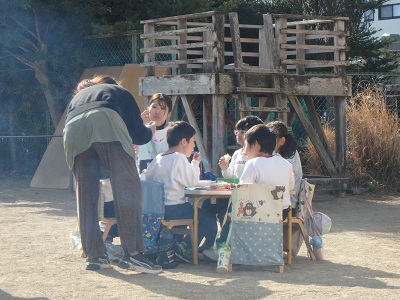 昨年12月にインフルエンザになり土日も入れると10日ほど寝込み、回復後そのまま大阪の大学の集中講義に出かけ、戻ったら年末年始。学生の成績を付けて、家の掃除をして大阪からもどってきた荷物を片付け・・あれよあれよという間に年が明け、3学期がスタート。延期してもらった会計士さんの監査やら年末調整やら届出書類やら追われに追われて「餅つき」に突入~!ようやく通常運転に戻りつつあり・・餅つきには、たくさんのパパやママがお手伝いにきてくださり、とても助かりました。年長さんは災害時の炊き出し訓練もかねて、のこぎりで薪をつくり、お釜も使います。「ところで、どうやって火を付けようか?」と尋ねたら「着火剤!」と即答。おお~現代っ子じゃ。「いやいや、プロはそんなものは使わないのだよ」と言いながら薪をくべると必ず弟子が現れます。(笑)「もう、薪いれていい?」ち餅つきそっちのけでワクワク。味見もしたいと言い張るので「シェフ、味はどうです?醤油足しますか?」と聞いたら「・・・」。とにかく味見をしたい弟子たちでした。(爆)寒波がやってくる前にできて、よかったです!年長は、この窯でカレーを作る計画もしはじめました・・どうやら巻き込まれそうです(汗)
