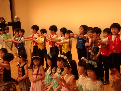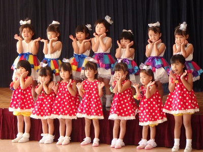 お遊戯会が開かれました。天気も良く、子ども達は上機嫌でホールにやってきました。今年のテーマは忍者!水と空と大地を守る3つの秘宝を探す旅・・なんだか、壮大なストーリーになりました。お話しの冒頭では、p会長が村長(むらおさ)として登場。ちびっこ忍者たちを見送ってくれました。舞台裏では、緊張気味の子ども達も曲の終盤にさしかかると気持ちを込めて、なりきって踊ってくれました。舞台に立っているだけでかわいい満3のひまわりさんから、表情豊かに踊ってくれた年長の女の子達。子ども達の成長する姿も見る事が出来ました。VTRが届いたら家族で、ワイワイ言いながら楽しんでいただきたいと思います。